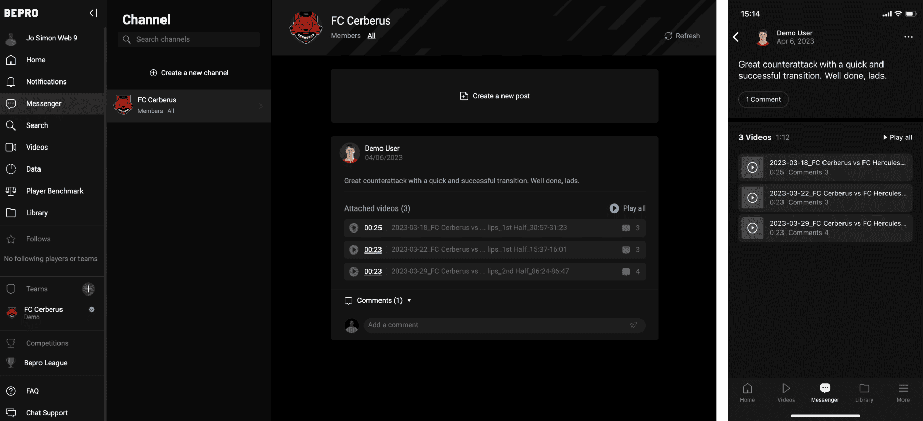 Du kannst jetzt auch unser sicheres Kommunikationstool, BEPRO Messenger, testen und sehen, wie einfach es ist, Videos und Feedback mit jedem in deinem Team über das Web und die mobile App zu teilen.