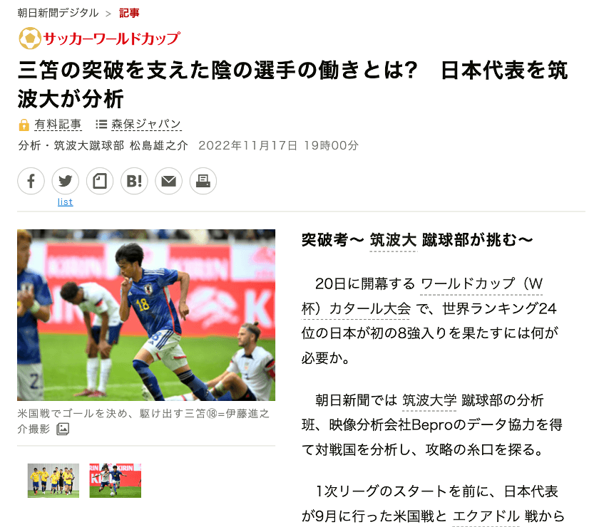 In partnership with Tsukuba University, Japanese newspaper Asahi Shinbun (Japanese, English) produced detailed match reports from our data to help their millions of readers gain more context on what happened on the pitch. They also provided their readers with an overview of Bepro and how we work with and support sports teams through technology.