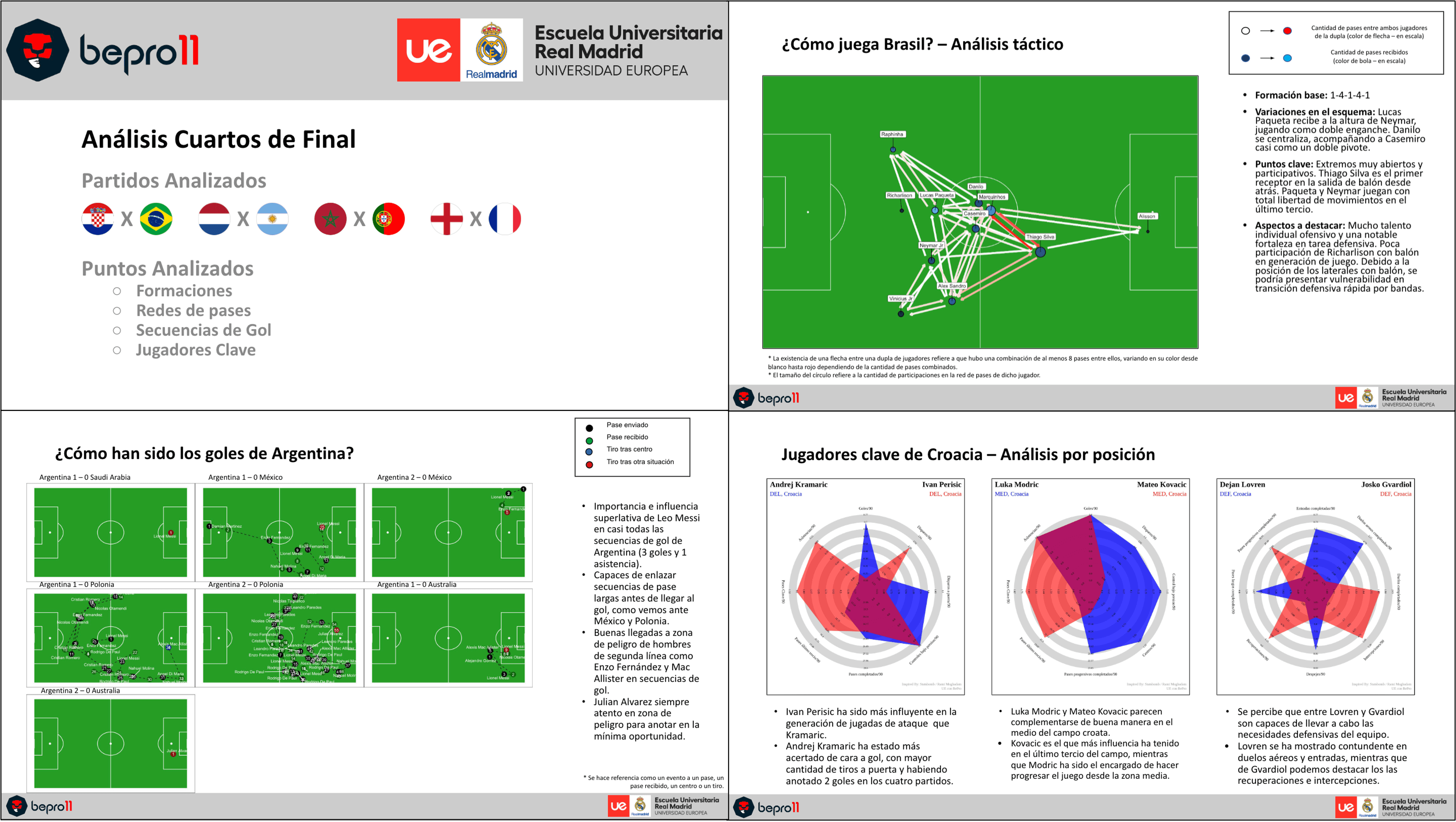 UE - Real Madrid Graduate School, a Spanish-based university, with a heavy sports-focus, created match reports for each quarter-final, using data from the Bepro API to review playing styles, previous goals and key players. They also shared the content in social media, gaining over 50k impressions, which they were very impressed with.
