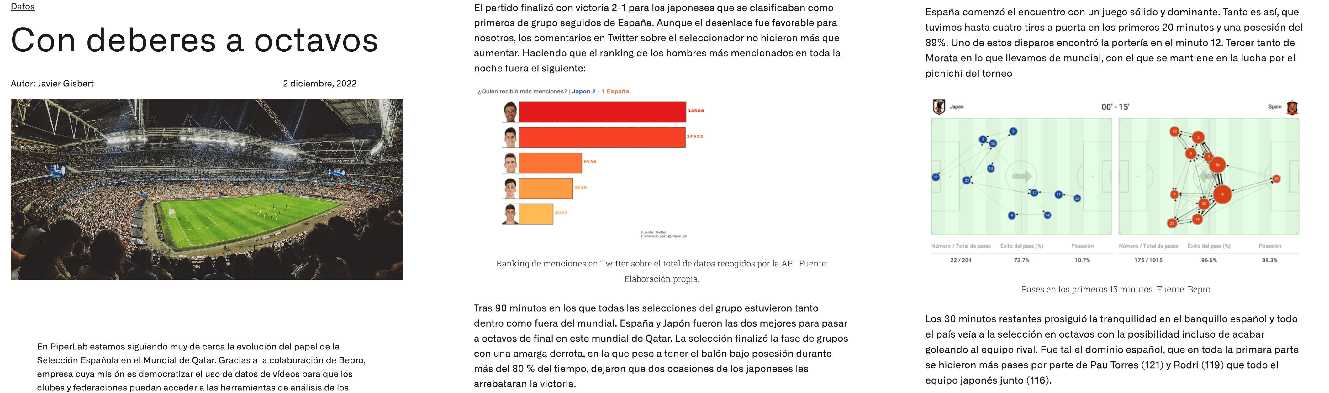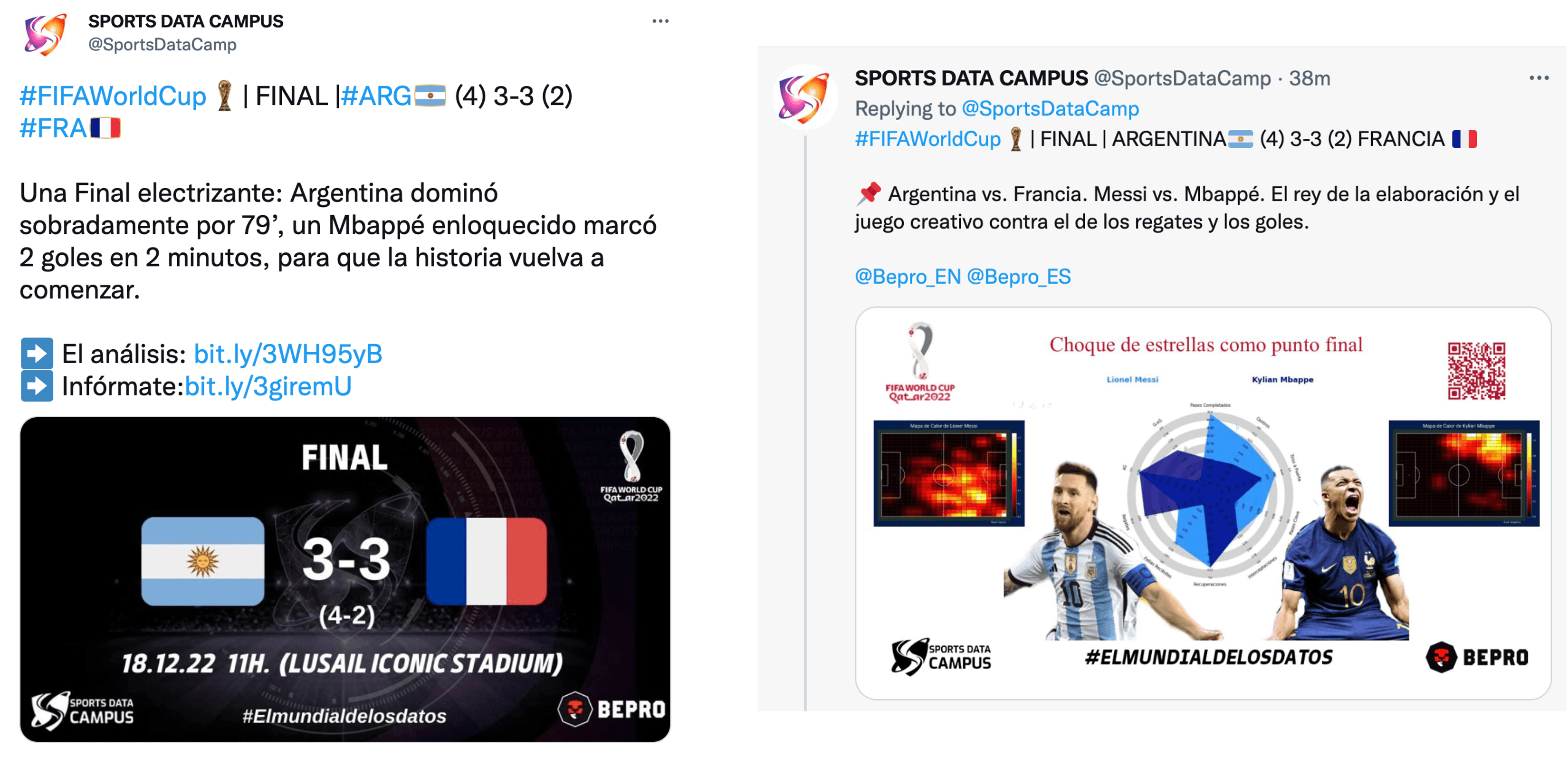 Sports Data Campus, a long time Bepro partner, offers Masters degrees focused on data and analytics in sport. Their students were provided with access to raw event data, from which they created an extensive range of content which they shared across their social media channels (especially their Twitter).