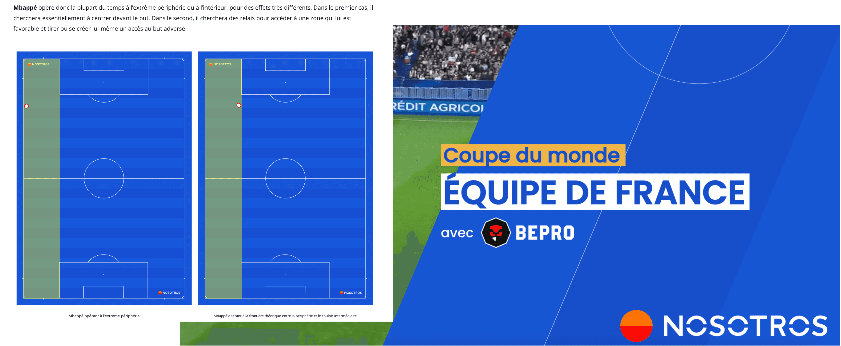 Renowned football expert Adrien Tarascon produced detailed and insightful reports for NOSOTROS, a French language coaching education platform for football. Focusing on the French team, Bepro data was used to find interesting discussion points and back-up opinion.
