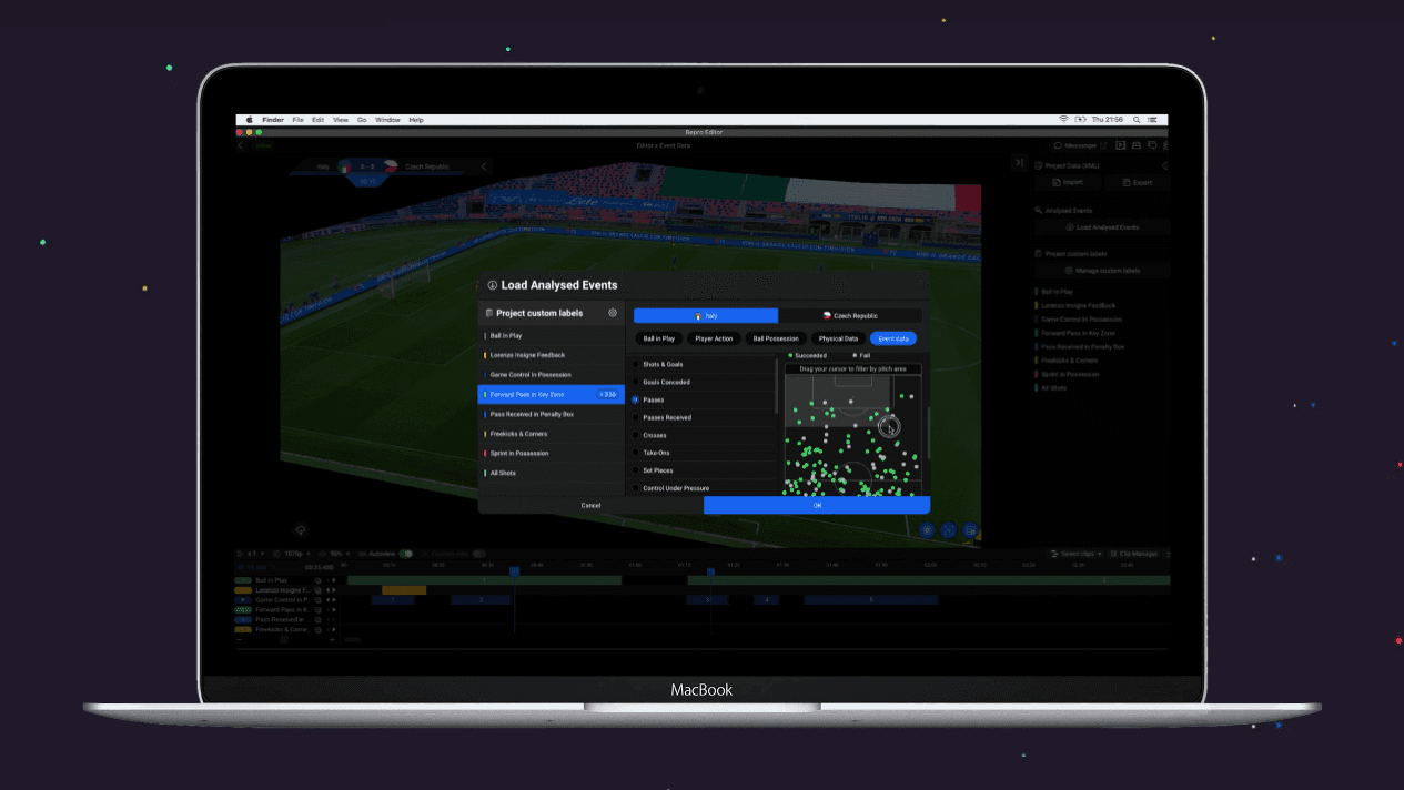 Nous avons introduit une nouvelle fonctionnalité dans notre Éditeur qui vous permet de trouver, filtrer et charger facilement des clips vidéo pour tout événement survenu pendant un match.