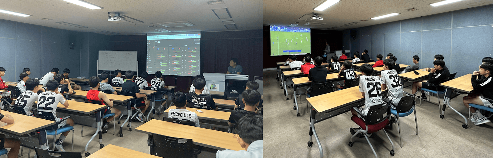 Les garçons du Cheonan FMC semblent étudier l'analyse du football ensemble, et pas seulement pratiquer ce sport.