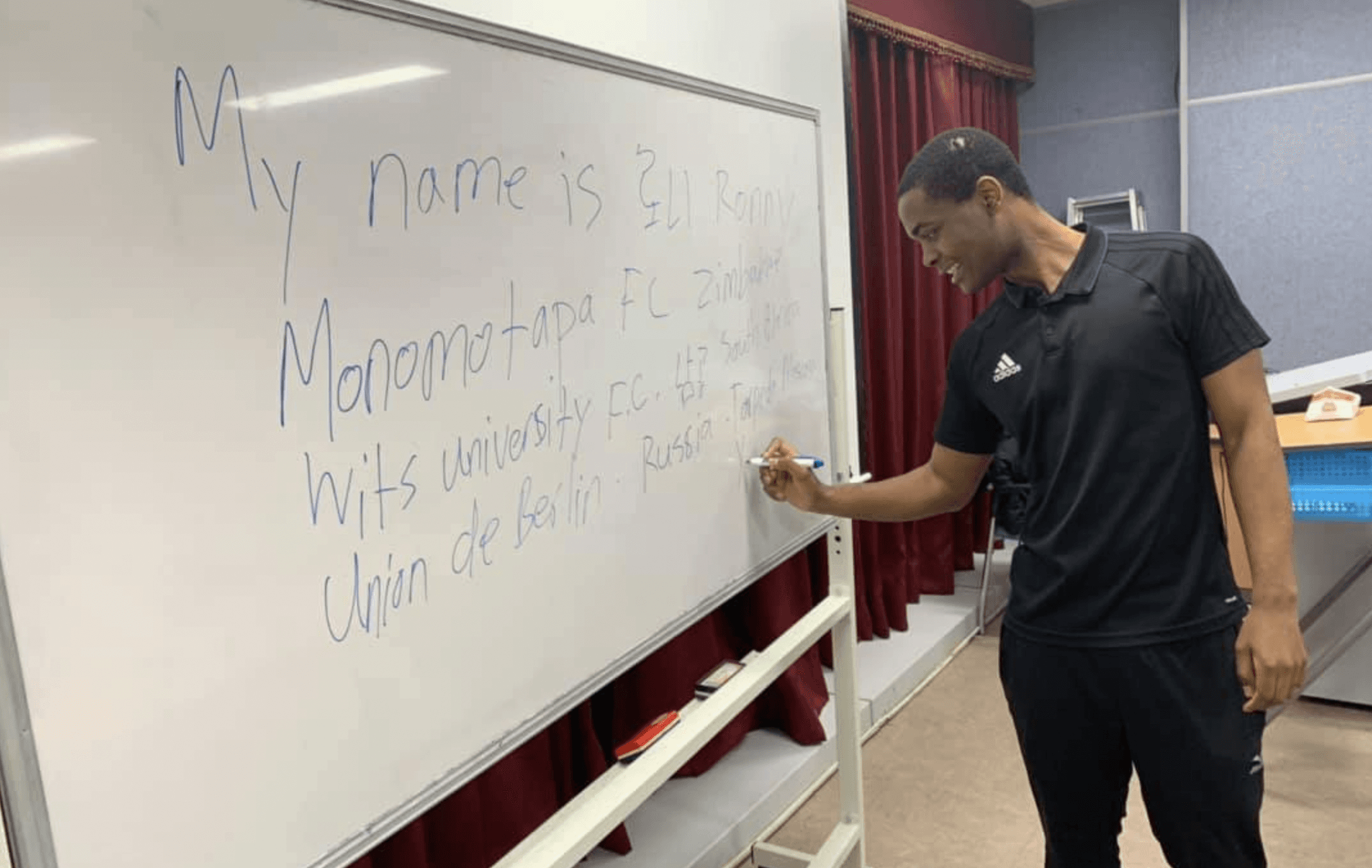 La deuxième raison de réunir les joueurs est d'améliorer leurs compétences linguistiques. L'un de mes amis, Ronnie, qui vient du Zimbabwe et a joué en Allemagne et en Russie, enseigne aux garçons pour leur donner un avantage supplémentaire. Apprendre l'anglais par le football est plus intéressant que les cours de langue habituels. Je crois que ces compétences linguistiques les amèneront à réfléchir plus largement à l'avenir.
