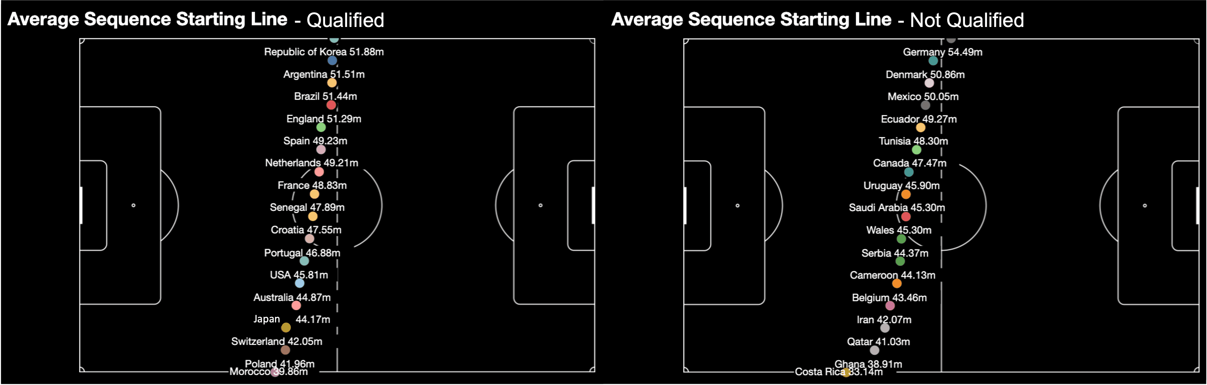 La Corée du Sud avait la ligne de séquence de départ moyenne la plus élevée, montrant qu'ils commençaient leurs séquences plus haut sur le terrain que n'importe quelle autre.