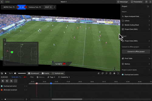 Cuando no puedas usar el editor de inmediato, guarda clips en el móvil y luego crea un proyecto para ese partido en el editor e importa los clips guardados en tu biblioteca para un análisis más profundo.