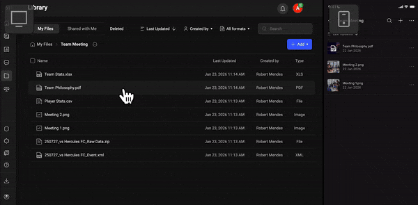 Manage various file formats needed for match preparation in one place in the Library alongside your videos!